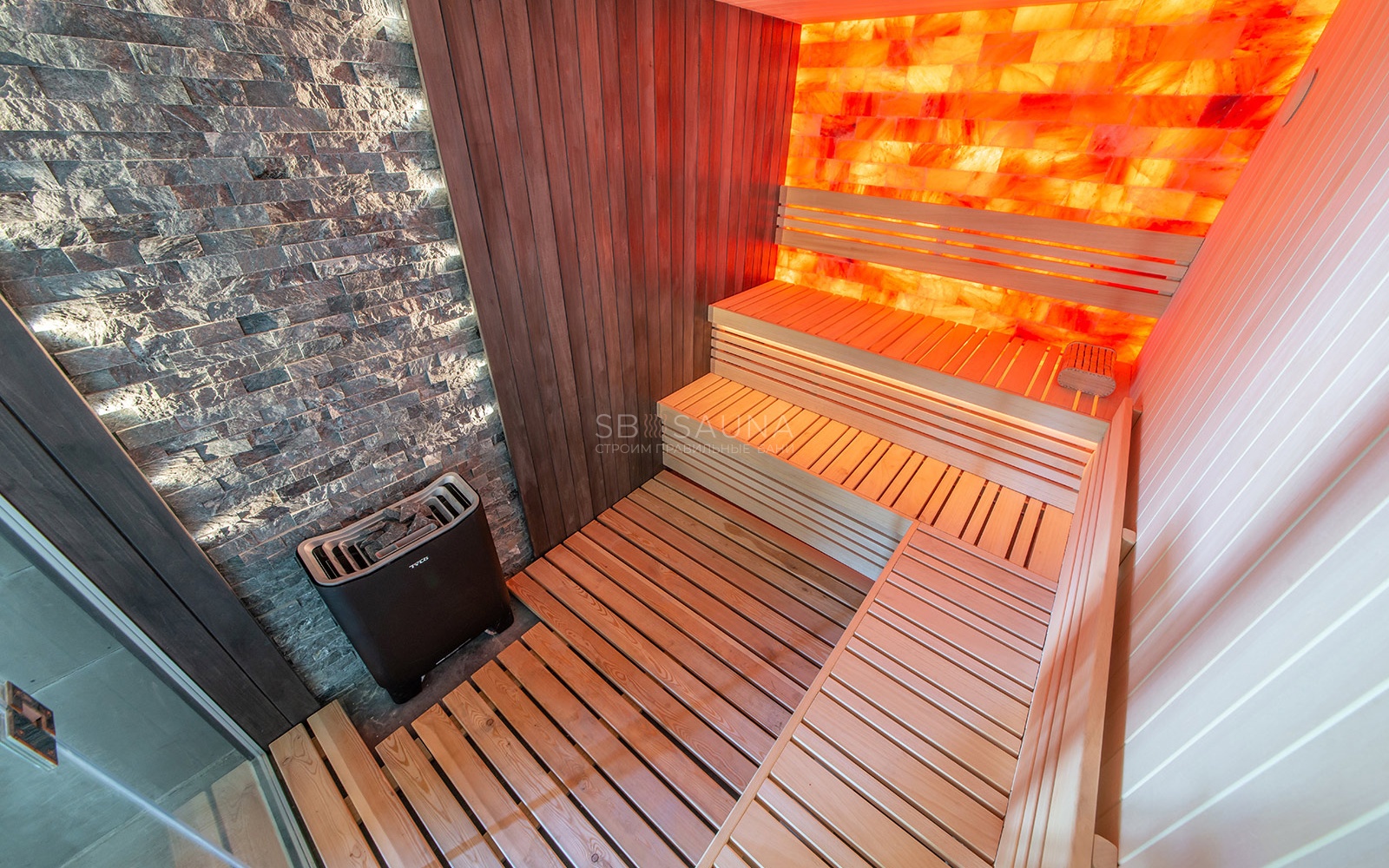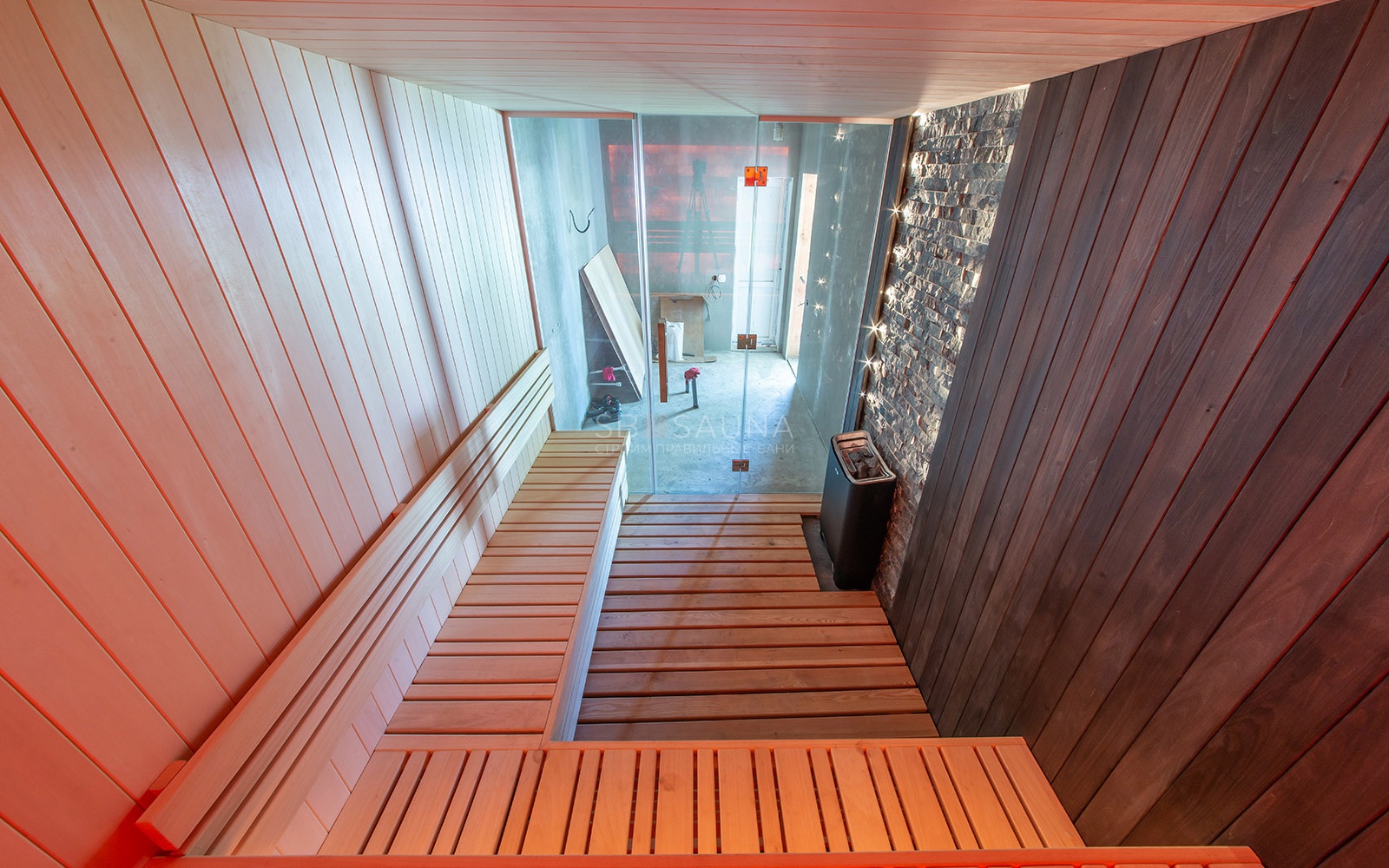 При проектировании парной важно подобрать правильную печь. Для данной финской сауны мы остановились на печи Tylo.