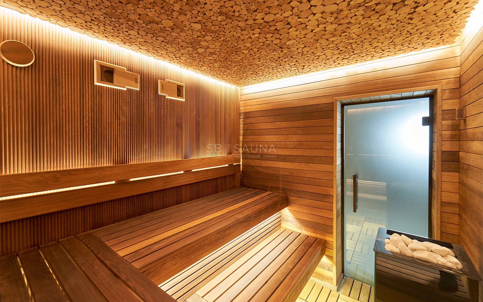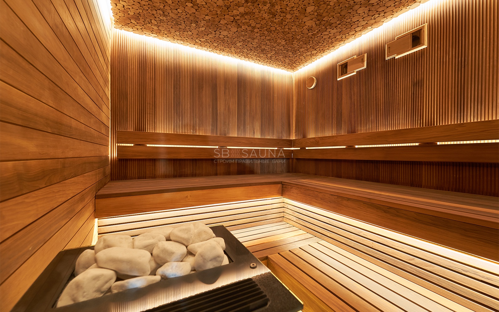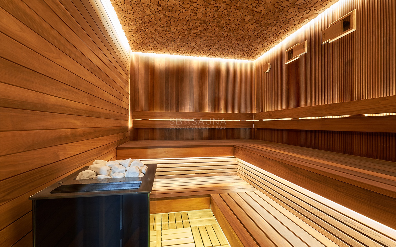 Не баня, а просто шоколадный торт! Тут все: стиль, практичность, инновации! Печь Sangens сразу же пришлась по душе нам и нашим Заказчикам. Термоосина вообще давняя любовь, ну и без ароматного можжевельника не обошлось. Дверь от Grandis черная матовая
